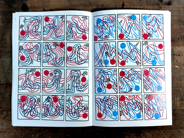 Heureuse rencontre est un fanzine abstrait réalisé Josselin Choquet ou lignes et points forment le décor et la contrainte de cette histoire.